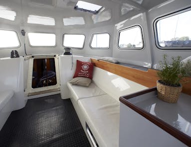 Die Nähe zur Natur wird durch einen geräumigen, geschützten und beheizten Decksalon mit 360-Grad-Aussicht ermöglicht. Ein angenehmer Ort, um deine nächste Wanderung oder Linie zu erblicken, dich mit Musse von der Schönheit der Natur inspirieren und beeindrucken zu lassen oder eine Nacht unter Segel zu verbringen.