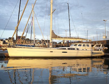 Eine Aluminiumkonstruktion – mit einem 10mm dickem Rumpf – und die hochwertigsten Decksbeschläge, Rigg und Segel ermöglichen es uns, in die entlegensten Gebiete vorzudringen. Nach höchsten Sicherheitsstandards ausgerichtet, über den Standards von World Sailing (ehemals ISAF) Offshore Special Regulations (OSR) Kategorie 1 gewartet und ausgestattet. Die ganze Wahl von Ausrüstungsgegenständen und Wartungsdienste werden durch das selektive Auge und die Hände des Weltklasse-Skippers und Mitinhabers Lionel Lemonchois durchgeführt.